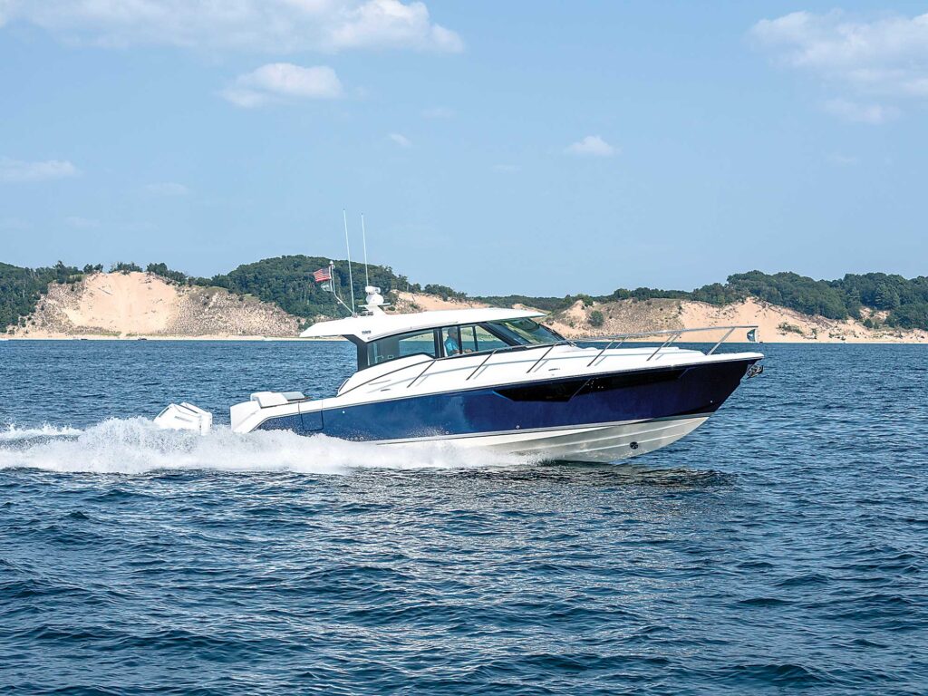 The Tiara Yachts 43 LE is packed with entertainment amenities and offers a luxurious ride.