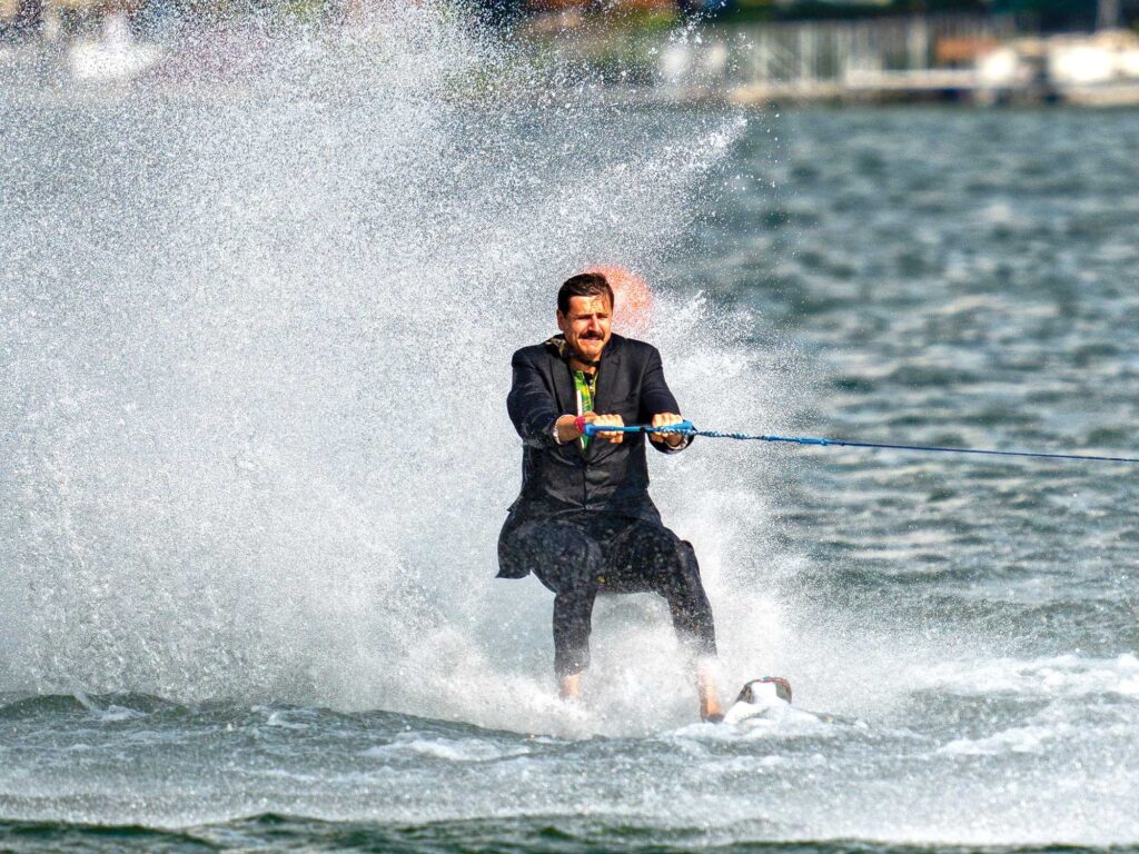 “We thought if we set out the slalom course at dusk the night before, nobody would notice, but of course, the local water patrol caught us dropping buoys,” Amir says. “We had to get a permit. So the next day, I went to see the city president, and he gave us permission on the condition that in the future we had to follow the rules.”